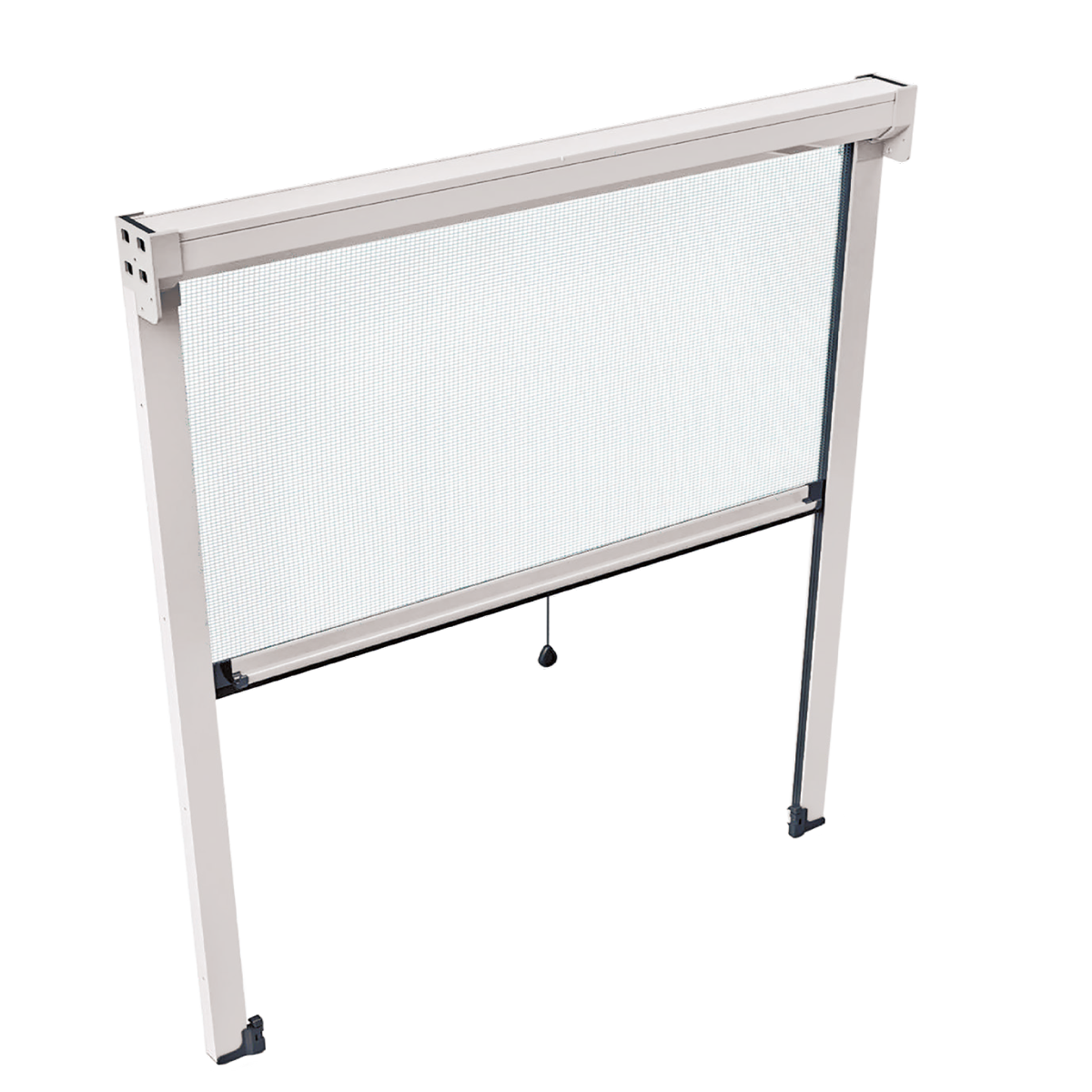 Moustiquaire enroulable pour fenêtre à caisson supérieur Mécanisme à ressort Coulisses latérales à doubles joints- brosses Barre de charge avec cordon de tirage ...